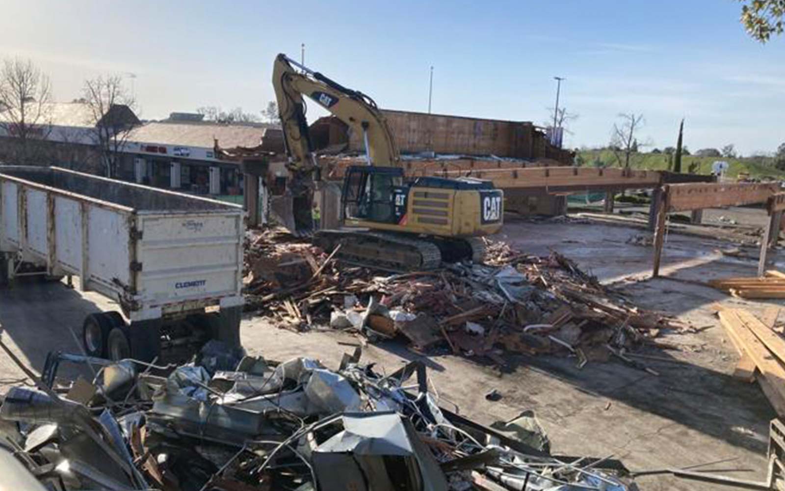 A demolition crew from J.A. Snyder Pacific West was busy late last month making way for a Quick Quack Car Wash at 3982 Missouri Flat Road in Placerville. A building at the site once held a Bank of America and later a seasonal Spirit Halloween store. The car wash will join other new additions to the Prospector's Plaza shopping center that was purchased by Gryphon Capital and Rich Development in 2019. Improvements followed in 2020 with Target taking over for a defunct Kmart and other businesses such as Habit Burger, Bath & Body Works and Mountain Mike's Pizza subsequently filling storefronts. In late 2023 a Jersey Mike's sandwich shop opened. Across from the Quick Quack project another building that housed Union Bank was also demolished; construction of new commercial space is now nearly complete at the location — a sign has gone up for a Dunkin' Donuts/Baskin Robbins that will neighbor an Aspen Dental office. Gryphon Capital's Chris Shane reports that only "one small vacancy" remains at Prospector's Plaza, which an Umpqua Bank branch previously occupied.